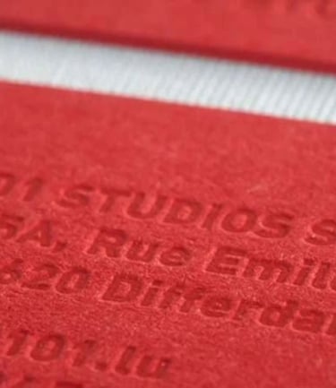 The opposite of embossing, an indented impression pressed into the material, offering a subtle yet tactile finish. This technique conveys understated elegance with a refined touch.